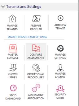 To use Compare Assessment feature, you need to go to Tenants & Settings section and then click on “Compare Assessments” button as shown below: