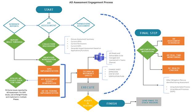 A. DynamicPacks Team can help in remediating AD Issues reported by the SmartProfiler for Active Directory. We, at DynamicPacks, have an expert AD Team who follows a steady approach for fixing the issues as shown in below diagram: