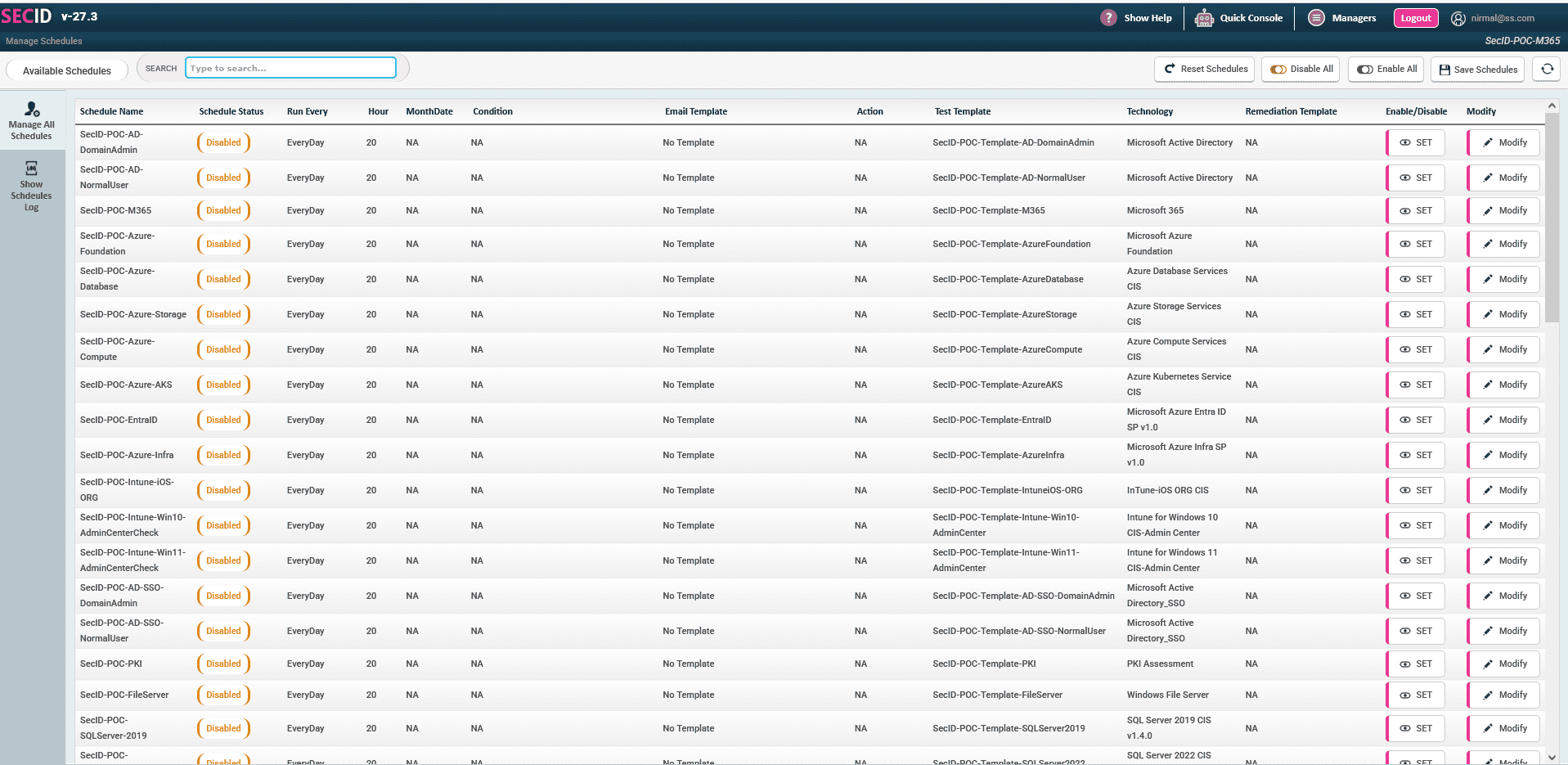 SecID allows users to schedule assessments at regular intervals, ensuring continuous monitoring and risk detection without manual intervention. You can define custom schedules based on your organization’s internal policies—such as weekly, monthly, or quarterly scans. This flexibility helps align assessments with internal audit cycles, compliance requirements, or security best practices, ensuring risks are identified and addressed proactively.